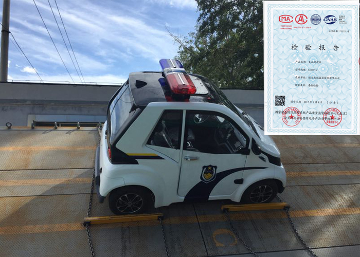 9月8 日, 綠友集團(tuán)自主研發(fā)的GREENMAN 兩座巡邏車順利通過“公安部安全與警用電子產(chǎn)品質(zhì)量檢驗中心”型式試驗認(rèn)證。取得該認(rèn)證后,綠友兩座巡邏車可以合法地使用警徽等警用標(biāo)志。該認(rèn)證要求較高,綠友車輛以優(yōu)異的性能一次性通過。為了提升GREENMAN 巡邏車在公安、武警、消防等行業(yè)的市場競爭力,我公司委托國家安全防范報警系統(tǒng)產(chǎn)品質(zhì)量監(jiān)督檢驗中心和公安部安全與警用電子產(chǎn)品質(zhì)量檢測中心,針對GREENMAN 兩座巡邏車的主要技術(shù)參數(shù)、制動性能、車外噪聲、側(cè)傾穩(wěn)定性、轉(zhuǎn)向性能、控制設(shè)備絕緣電阻、線束、專用接線盒、續(xù)駛里程、防雨密封性,防火要求等項目進(jìn)行了檢驗測試,所有檢驗項目均符合檢驗標(biāo)準(zhǔn)要求,最終檢測結(jié)果證明了GREENMAN 兩座巡邏車質(zhì)量的可靠性。