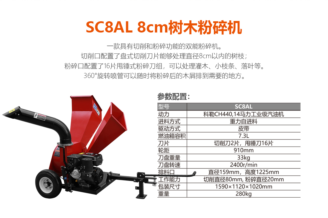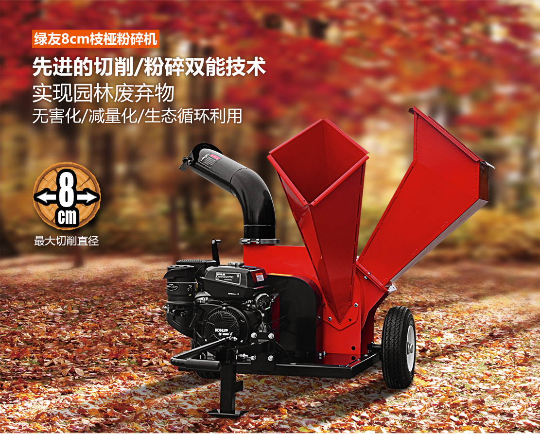 綠友小粉碎機是一款徑向進料系統(tǒng)的商用小型粉碎機,其寬大的粉碎進料口可同時送入大量的細小枝椏,重力切削進料口最大可切削8cm的樹枝,360度旋轉(zhuǎn)出料口更方便收集及清理。